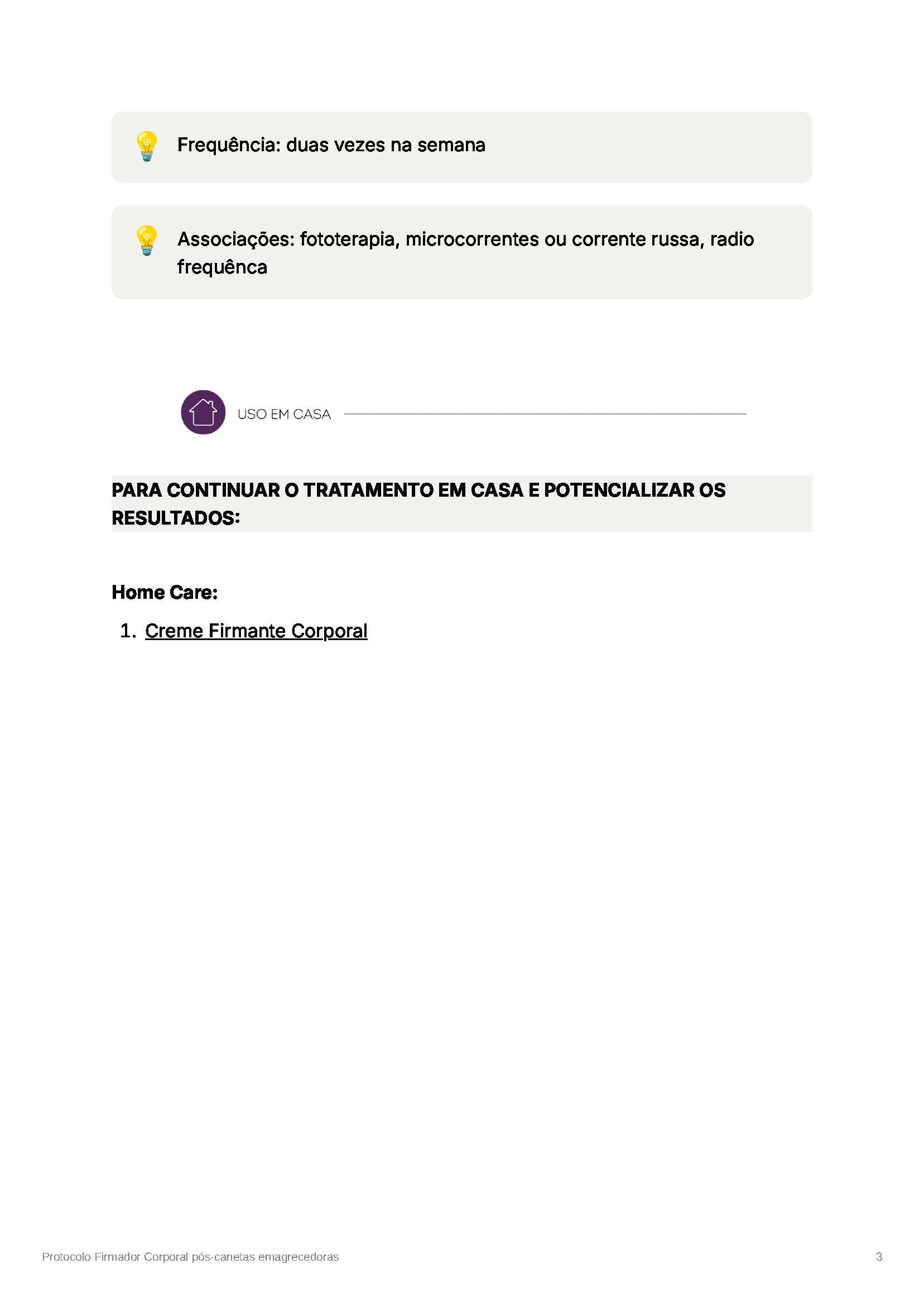 Indicado para protocolos profissionais de firmeza, pós-emagrecimento, pós-procedimentos corporais e manutenção da qualidade da pele.